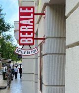 The logo draws inspiration from the core element of Berale: the vertically stacked, multi-layered, uniquely seasoned meat, cooked on a rotating grill. Practically, the logo visually represents the grill, incorporating letters rotated 90 degrees while maintaining clear readability, and complemented by a subheadline. The animated version of the logo further emphasizes the distinctive preparation method that defines the menu.